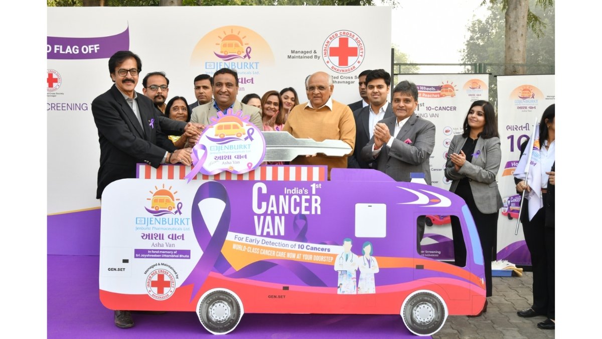 Gandhinagar (Gujarat) [India], January 8: In a landmark initiative inaugurated by the Honourable Chief Minister of Gujarat Shri Bhupendra Patel Jenburkt Pharmaceuticals Limited has conceptualized and donated the Jenburkt ASHA Van India’s first mobile cancer screening van capable of screening 10 different cancer types and managed by the Indian Red Cross Society Bhavnagar District.